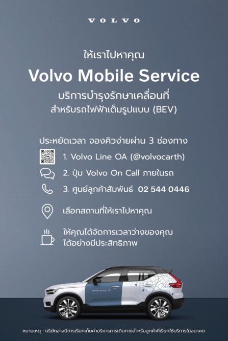 ผู้สนใจสามารถศึกษารายละเอียดของบริการ Volvo Mobile Service เพิ่มเติม ได้ที่ https://bit.ly/3XChnKd