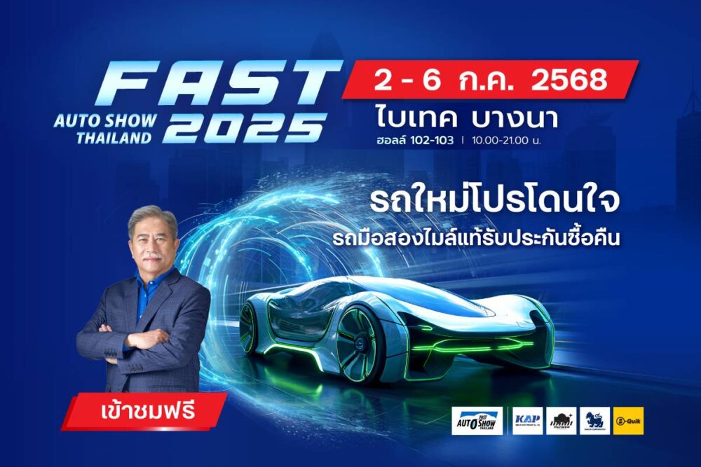 งาน “ฟาสต์ ออโต โชว์ ไทยแลนด์ 2025” จะจัดขึ้นระหว่าง วันที่ 2 – 6 กรกฎาคม ศกนี้ ณ ศูนย์นิทรรศการและการประชุมไบเทค บางนา ฮอลล์ 102 – 103 โดยรวบรวมยนตรกรรมมากคุณภาพหลากหลายแนวมาให้ผู้บริโภคได้เปรียบเทียบความคุ้มค่า ครบทุกเซ็กเมนต์ “เลือกคันที่ชอบ ถอยคันที่ใช่” ในแบบที่คุ้มค่าเงินสูงสุด ภายใต้คอนเซ็ปท์ “รถใหม่โปรโดนใจ รถมือสองไมล์แท้รับประกันซื้อคืน” ครบจบในงานเดียว เข้าชมฟรี! ไม่มีค่าใช้จ่าย แถมลุ้นรับโชคตลอด 5 วันเต็ม โดยได้รับการสนับสนุนจาก สิงห์ คอร์เปอเรชั่น ผลิตภัณฑ์ดูแลรักษารถยนต์ มันวาว และศูนย์บริการรถยนต์ครบวงจร บี-ควิก ติดตามรายละเอียดของงานได้ที่ Facebook: FAST AUTO SHOW