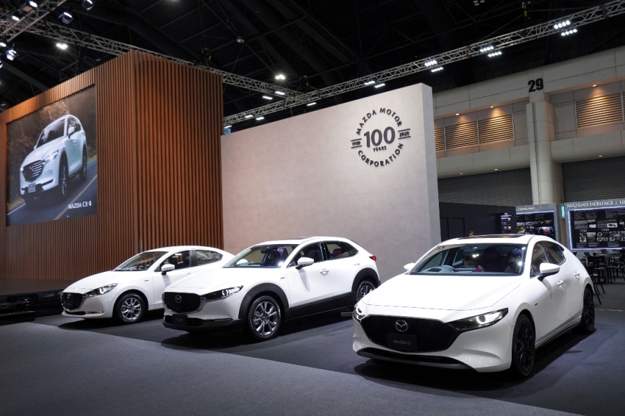 รถมาสด้ารุ่นพิเศษ ครบรอบ 100 ปี มีทั้งให้เลือก 3 รุ่น ประกอบด้วย Mazda2 1.3 S Leather ทั้งรุ่นแฮตช์แบค 5 ประตู และซีดาน 4 ประตู Mazda3 2.0 SP ทั้งรุ่นฟาสท์แบค 5 ประตู และซีดาน 4 ประตู และ Mazda CX-30 2.0 SP ยกระดับความโดดเด่นด้วยสีภายนอก Snowflake White Pearl และป้ายสัญลักษณ์บ่งบอกความเป็นรุ่นพิเศษครบรอบ 100 ปี