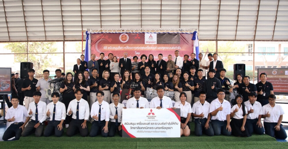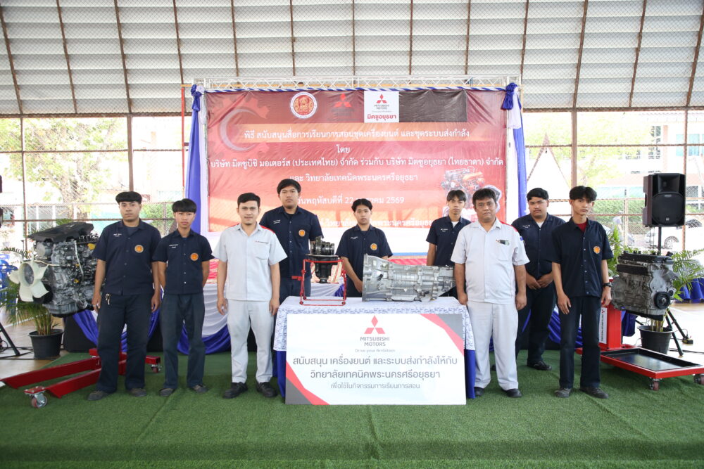 บริษัท มิตซูบิชิ มอเตอร์ส (ประเทศไทย) จำกัด เดินหน้าสนับสนุนการศึกษา และส่งเสริมการพัฒนาทักษะเชิงช่างอย่างต่อเนื่อง เป็นปีที่ 11 ตอกย้ำความมุ่งมั่นของบริษัทฯ ในการยกระดับมาตรฐานการศึกษาของประเทศไทย และส่งเสริมการเรียนรู้โดยผ่านการลงมือปฏิบัติจริง ร่วมกับผู้จำหน่าย บริษัท มิตซูอยุธยา (ไทยธาดา) จำกัด มอบเครื่องยนต์และชุดส่งกำลัง ให้แก่ วิทยาลัยเทคนิคพระนครศรีอยุธยา เพื่อใช้เป็นสื่อการเรียนการสอน มุ่งเปิดโอกาสให้นักศึกษาได้สัมผัสการเรียนรู้เทคโนโลยี และองค์ความรู้ทางเทคนิคที่ทันสมัย อันนำไปสู่การเพิ่มโอกาสสู่ความสำเร็จ