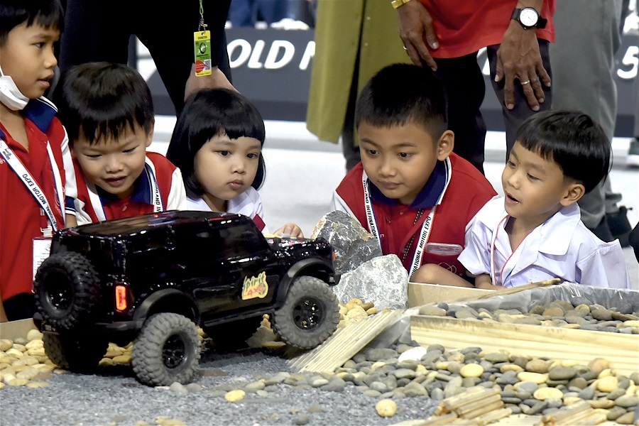 หลังจากนั้น น้องๆ ยังได้วาดภาพระบายสีในบูธมูลนิธิ “ลมหายใจไร้มลทิน”/ชมภาพวาดของเยาวชนที่เป็นสมาชิก และเครือข่ายชมรม “ศิลปินน้อย MOTOR EXPO”/ลองฝึกทักษะการขับรถ F1 แบบง่ายๆ ที่บูธ F1 in Schools/ชมการบังคับรถจำลองในบูธ Spirit of the 4×4 Driving School/ ชมรถโบราณ และรับของที่ระลึก ณ บูธสมาคมรถโบราณแห่งประเทศไทย