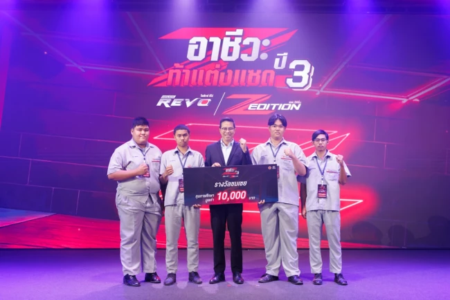 นายณัทธร ศรีนิเวศน์ ผู้ช่วยกรรมการผู้จัดการใหญ่ บริษัท โตโยต้า มอเตอร์ ประเทศไทย จำกัด พร้อมด้วย นางเบญจวรรณ ปกป้อง ผู้อำนวยการสำนักความร่วมมือ สำนักงานคณะกรรมการการอาชีวศึกษา กระทรวงศึกษาธิการ นายศุภชัย แพร่พิพัฒน์มงคล ประธานชมรมผู้แทนจำหน่ายฯ เขตภาคตะวันออก ร่วมมอบรางวัลผู้ชนะการประกวดแต่งรถกระบะไฮลักซ์ รีโว่ แซด อิดิชั่น ภายใต้กิจกรรม “อาชีวะ ท้าแต่งแซด กับ ไฮลักซ์ รีโว่ แซด อิดิชั่น ปี 3” เมื่อวันที่ 11 มีนาคม 2569 ณ TOYOTA ALIVE บางนา กม.3