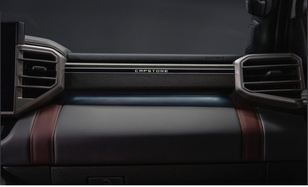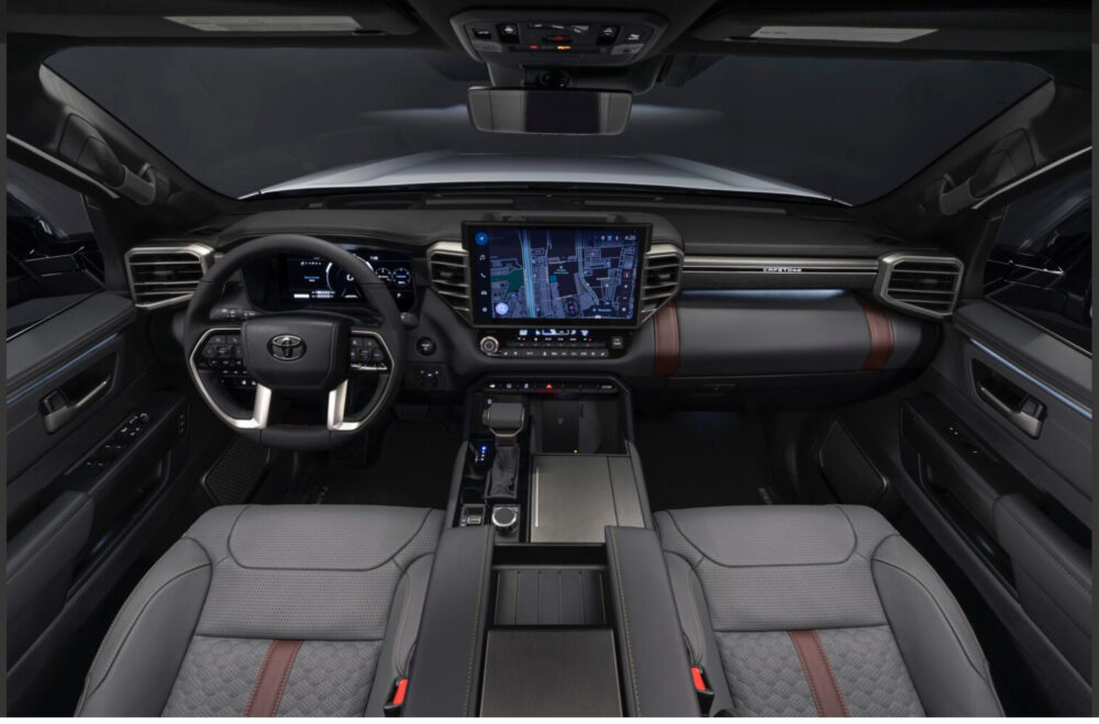 Toyota Tundra อัพเกรดปรับโฉมใหม่สำหรับภายในรุ่น Capstone โดยมาพร้อมเบาะนั่งหุ้มหนัง Shale Premium Textured ซึ่งจะเน้นความหรูหราของห้องโดยสารเป็นหลัก