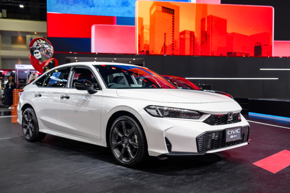 Honda Civic e:HEV สปอร์ตซีดานขวัญใจวัยรุ่น ดีไซน์สปอร์ตเท่ อัตราเร่งแรงเร้าใจ ประหยัดน้ำมันเหนือขั้น ที่ได้รับการปรับไลน์อัปเป็นเป็นระบบฟูลไฮบริด e:HEV ในทุกรุ่นย่อย พร้อมแนะนำรุ่นย่อยใหม่ e:HEV EL รุ่นเริ่มต้น ราคา 949,000 บาท มั่นใจตลอดเส้นทางด้วยเทคโนโลยีความปลอดภัยอัจฉริยะ Honda SENSING และฟังก์ชันการใช้งานอื่นๆที่ครบครัน** อาทิ เซนเซอร์กะระยะหน้า 4 จุด และ หลัง 4 จุด ระบบเครื่องเสียงพร้อมลำโพง BOSE 12 ตำแหน่ง Google built-in แอปและบริการของ Google ที่ติดตั้งมาในตัว ช่องเชื่อมต่อ USB
