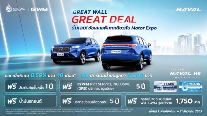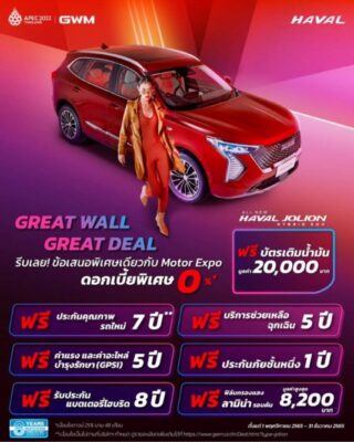- พบข้อเสนอและสิทธิประโยชน์สุดเอ็กซ์คลูซีฟจาก เกรท วอลล์ มอเตอร์ อีกมากมาย ภายใต้แคมเปญ Great Wall Great Deal สำหรับรถยนต์แบรนด์ HAVAL ทั้ง 3 รุ่น