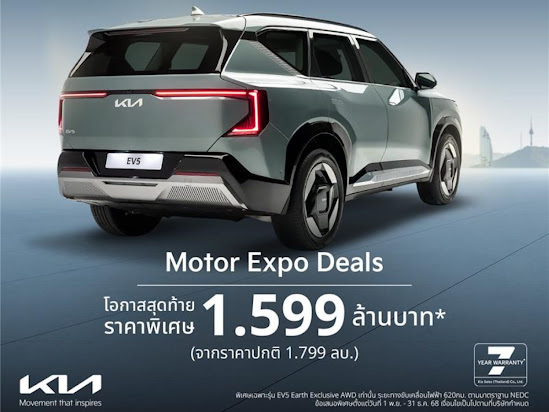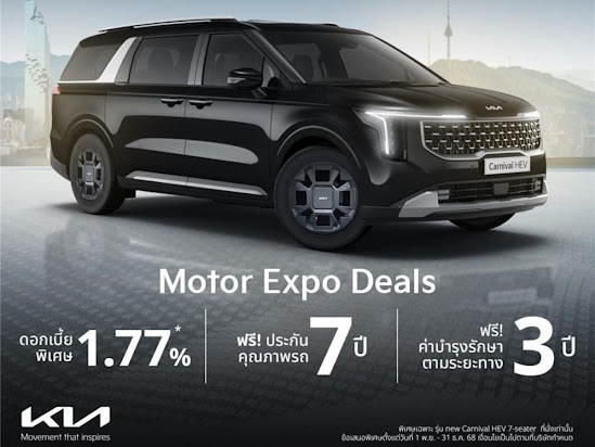 เกีย เซลส์ (ประเทศไทย) จัดโปรโมชัน Motor Expo 2025 พร้อมมอบข้อเสนอและแพ็กเกจคุ้มครองแบบจัดเต็มส่งท้ายปี ครอบคลุมรถยนต์ทั้ง 4 รุ่นหลัก ได้แก่ The Kia Carnival ทั้ง 2 ระบบขับเคลื่อน ได้แก่ The Kia Carnival Diesel และ The new Kia Carnival HEV 7-seater เอ็มพีวีรุ่นเรือธงโฉมใหม่ที่เพิ่งประกาศเปิดตัวเมื่อเดือนตุลาคมที่ผ่านมา The Kia EV5 The Kia EV9 และ The Kia Sorento PHEV AWD โดยเกีย เซลส์ (ประเทศไทย) พร้อมมอบโปรโมชันสุดคุ้มให้กับผู้ที่สนใจได้เลือกพิจารณา The Kia Carnival Diesel SXL (11 ที่นั่ง) มอบส่วนลดพิเศษมูลค่า 300,000 บาท The Kia Carnival Diesel SXL Luxury (7 ที่นั่ง) มอบส่วนลดพิเศษมูลค่า 400,000 บาท The Kia Sorento PHEV AWD มอบส่วนลดพิเศษมูลค่า 350,000 บาท และ The Kia EV5 Air มอบส่วนลดพิเศษ 100,000 บาท ผ่อนเริ่มต้น 8,863 บาท และมอบแพ็กเกจความคุ้มครอง โดยโปรโมชันสำหรับแต่ละรุ่นย่อยจะมีข้อเสนอแตกต่างกันไป อาทิ การรับประกันคุณภาพ ประกันภัยชั้น 1 พร้อม พ.ร.บ. ฟรีค่าบำรุงรักษาตามระยะ บริการช่วยเหลือฉุกเฉิน การรับประกันแบตเตอรี่รถยนต์ (High-Voltage Battery) สำหรับรถกลุ่มอีวี (EV) ไฮบริด (HEV) และปลั๊กอินไฮบริด (PHEV) เป็นต้น โดยเกีย เซลส์ (ประเทศไทย) พร้อมมอบข้อเสนอสุดคุ้มค่าให้ผู้สนใจตั้งแต่วันที่ 1 พฤศจิกายน จนถึง 31 ธันวาคม 2568 ณ โชว์รูมเกียทั่วประเทศ และยังสามารถพบข้อเสนอสุดพิเศษเดียวกันนี้ได้ที่งาน Motor Expo 2025 โดยเกียได้ยกขบวนรถเอสยูวีและเอ็มพีวีอีกหลากหลายรุ่นครอบคลุมทุกไลน์อัปไปจัดแสดงที่งาน ผู้ที่สนใจสามารถร่วมสัมผัสยนตกรรมและสอบถามรายละเอียดโปรโมชันได้ ณ บูทเกียหมายเลข A24 อิมแพ็ค ชาเลนเจอร์ ฮอลล์ 1 เมืองทองธานี ตั้งแต่วันที่ 29 พฤศจิกายน ถึง 10 ธันวาคม 2568