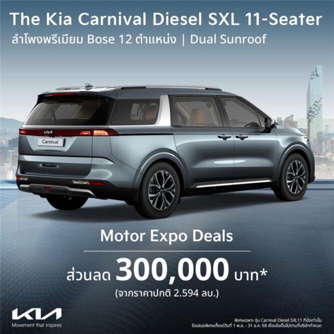โปรโมชันสำหรับ The Kia Carnival Diesel SXL (11 ที่นั่ง) สำหรับวันที่ 1 พฤศจิกายน – 31 ธันวาคม 2568