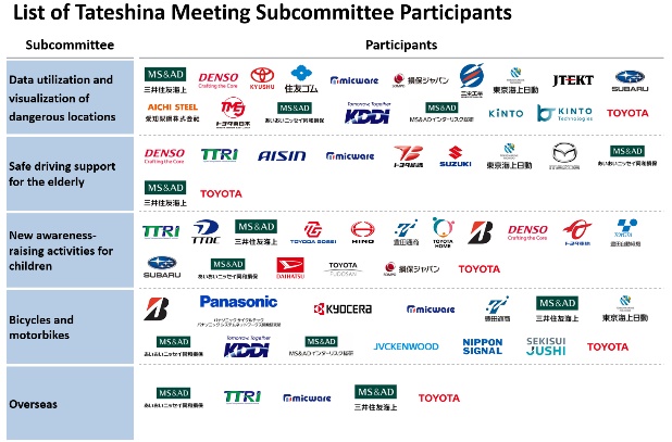 - มูลนิธิโตโยต้า โมบิลิตี้ (TMF) – สนับสนุนเงินทุนและเทคโนโลยี รวมถึงการนำ AI มาใช้ในการวิเคราะห์ข้อมูลจาก Probe Data, ข้อมูลที่บันทึกเหตุการณ์ที่อาจนำไปสู่อุบัติเหตุ และข้อมูลอุบัติเหตุ