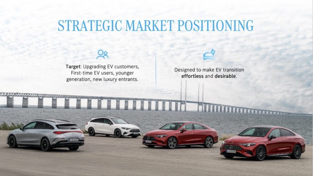 มร. มาร์ทิน ชเวงค์ ประธานเจ้าหน้าที่บริหารและกรรมการผู้จัดการใหญ่ บริษัท เมอร์เซเดส-เบนซ์ (ประเทศไทย) จำกัด กล่าวว่า “สำหรับการทำตลาดรถยนต์พลังงานไฟฟ้า 100% เมอร์เซเดส-เบนซ์ ประเทศไทย ได้มีการใช้กลยุทธ์ที่แตกต่างจากประเทศอื่นๆ โดยเริ่มต้นด้วยการนำรุ่นแฟลกชิปในเซกเมนต์ Top-End Luxury อย่าง EQS มาเปิดตัวครั้งแรกในปี 2565 ทั้งรุ่นนำเข้าและรุ่นประกอบในประเทศ เพื่อทำให้คนไทยได้สัมผัสกับขั้นสุดของรถยนต์พลังงานไฟฟ้าระดับโลกจากเมอร์เซเดส-เบนซ์ ก่อนที่ในปี 2566–2567 จะเริ่มเปิดตัวรถยนต์ในเซกเมนต์ Entry Luxury อย่าง EQB 250 ที่ได้รับการตอบรับเป็นอย่างดี จนไปถึงการเปิดตัว EQE 350 4MATIC SUV, EQE 53 4MATIC+, EQE 300 และ EQS 450 4MATIC SUV ตามลำดับ ซึ่งจากระยะเวลาที่ผ่านมาจนถึงปัจจุบัน เมอร์เซเดส-เบนซ์ มีความเข้าใจในโจทย์และความพร้อมของผู้บริโภคชาวไทยสำหรับการใช้งานรถยนต์พลังงานไฟฟ้าเป็นอย่างดี