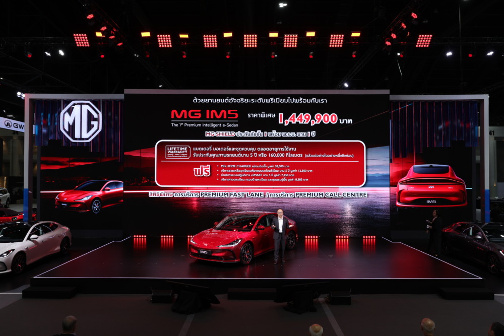 บริษัท เอสเอไอซี มอเตอร์ – ซีพี จำกัด และ บริษัท เอ็มจี เซลส์ (ประเทศไทย) จำกัด ผู้ผลิตและผู้จำหน่ายรถยนต์เอ็มจีในประเทศไทย เปิดตัว MG IM5 ยนตรกรรมซีดานไฟฟ้าระดับพรีเมียมในฐานะ “The 1st Premium Intelligent e-Sedan” ที่พัฒนาขึ้นสำหรับผู้บริโภคที่มองหายนตรกรรมไฟฟ้าที่สะท้อนตัวตน และมองหาเทคโนโลยีที่ไม่ยึดติดกับกรอบเดิม ภายใต้แนวคิด “I AM WHO I AM” ผสานรวมความลงตัวของ ELEGANCE – ELECTRIC – ENTELLIGENT สู่การเป็นสปอร์ตคูเป้ซีดานที่มอบประสบการณ์การขับขี่ที่ปราดเปรียว ด้วยระยะทางวิ่งกว่า 860 กิโลเมตร ถือเป็นรถ EV อีกหนึ่งรุ่นที่วิ่งได้ไกลที่สุดในคลาสด้วยราคาพิเศษ 1,449,900 บาท พร้อมการรับประกันแบตเตอรี่แรงเคลื่อนสูง ชุดมอเตอร์ขับเคลื่อน และชุดควบคุมมอเตอร์ขับเคลื่อนตลอดอายุการใช้งาน (EV LIFETIME WARRANTY) อีกทั้งภายในงาน บางกอก อินเตอร์เนชันแนล มอเตอร์โชว์ ครั้งที่ 47 เอ็มจี ยังได้นำยนตรกรรมหลากหลายรุ่นมาจัดแสดง พร้อมข้อเสนอพิเศษอีกมากมาย เพื่อมอบความคุ้มค่าและประสบการณ์ที่เหนือระดับให้กับลูกค้าที่สนใจเป็นเจ้าของรถยนต์ เอ็มจี