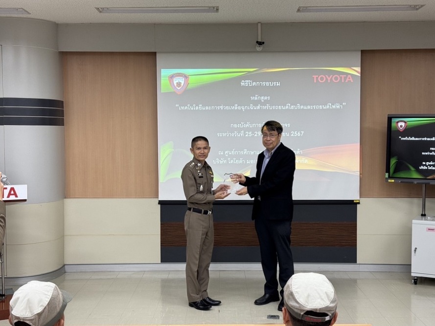 บริษัท โตโยต้า มอเตอร์ ประเทศไทย จำกัด โดยศูนย์การศึกษาและฝึกอบรมโตโยต้า ได้จัดการอบรมหลักสูตร เทคโนโลยีและการช่วยเหลือฉุกเฉิน สำหรับรถยนต์ไฮบริดและรถยนต์ไฟฟ้า ระหว่างวันที่ 25-29 พฤศจิกายน 2567 ณ ศูนย์การศึกษาและฝึกอบรมโตโยต้า ให้กับตำรวจจราจรโครงการพระราชดำริ กองกำกับการ 6 กองบังคับการตำรวจจราจร โดยได้รับเกียรติจาก รองผู้บังคับการตำรวจจราจร พันตำรวจเอก จิรกฤต จารุนภัทร์ เข้าร่วมพิธีเปิดการอบรม และผู้กำกับการ 6 กองบังคับการตำรวจจราจร พันตำรวจเอก ประทีป ศรีหรั่งไพโรจน์ ร่วมพิธีมอบเกียรติบัตร