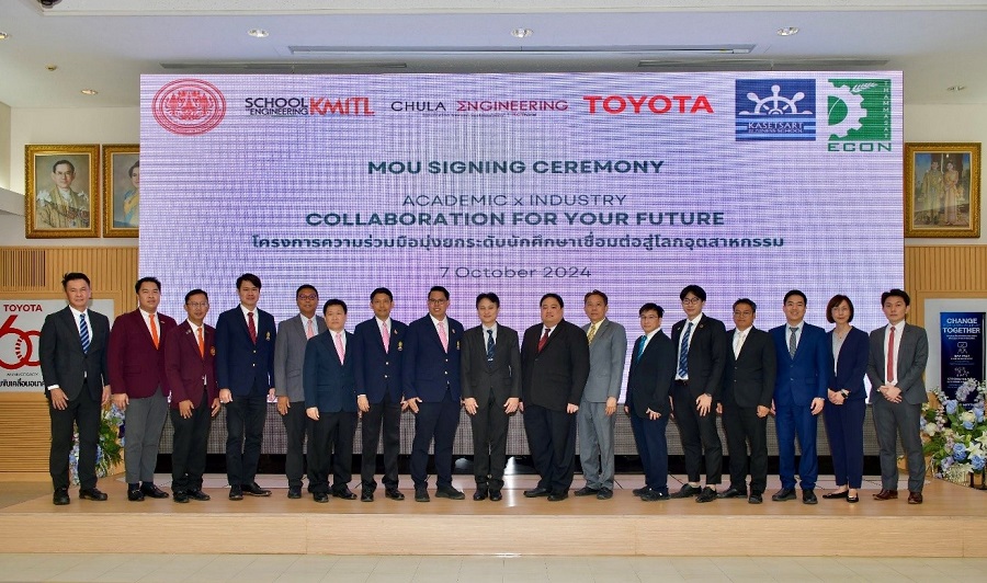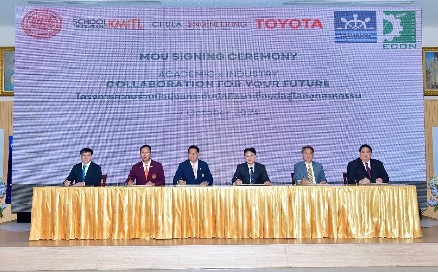 นายนันทวัฒน์ ศรีวรัตน์อัชกุล ผู้ช่วยกรรมการผู้จัดการใหญ่ บริษัท โตโยต้า มอเตอร์ ประเทศไทย จำกัด พร้อมด้วย ผศ.ดร. สุรัฐ ขวัญเมือง รองคณบดีคณะวิศวกรรมศาสตร์ จุฬาลงกรณ์มหาวิทยาลัย, รศ.ดร.สมยศ เกียรติวนิชวิไล คณบดีคณะวิศวกรรมศาสตร์ สถาบันเทคโนโลยีพระจอมเกล้าเจ้าคุณทหารลาดกระบัง, ผศ.ดร. ชัยวัฒน์ เอกวัฒน์พานิชย์ รองคณบดีฝ่ายอุตสาหกรรมสัมพันธ์และกิจการพิเศษ คณะวิศวกรรมศาสตร์ มหาวิทยาลัยเทคโนโลยีพระจอมเกล้าธนบุรี, ผศ.ดร.ศุภฤกษ์ สุขสมาน รองคณบดีคณะบริหารธุรกิจ มหาวิทยาลัยเกษตรศาสตร์, และ ผศ.ดร.ศุภชัย ศรีสุชาติ รักษาการแทนในตำแหน่งคณบดี คณะเศรษฐศาสตร์มหาวิทยาลัยธรรมศาสตร์ ร่วมลงนามในบันทึกข้อตกลงความร่วมมือ เพื่อมุ่งยกระดับนักศึกษาเชื่อมต่อสู่โลกอุตสาหกรรม ณ โรงงานโตโยต้า บ้านโพธิ์ จ. ฉะเชิงเทรา