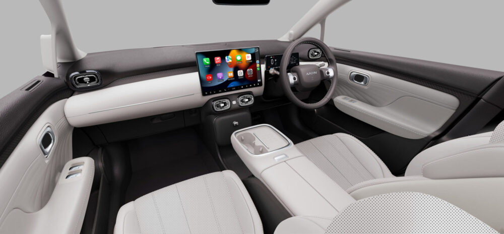 AION UT โดดเด่นด้วยดีไซน์ที่ได้แรงบันดาลใจจาก Milan Design Aesthetics ผสมผสานศิลปะและเทคโนโลยีอย่างลงตัว พร้อม Winky Headlight และ Matrix Cube Light ที่สะท้อนความมีชีวิตชีวาและทันสมัยในทุกมุมมอง ภายในห้องโดยสารกว้างขวางด้วยพื้นที่แถวหลังถึง 1,385 มม. พร้อมเบาะแบบ Butterfly-shaped Seat มอบความสะดวกสบายในการนั่งโดยสาร และยังสามารถปรับพับเบาะนั่งคู่หน้าเปลี่ยนห้องโดยสารเป็นเตียงนอนได้ตามต้องการ
