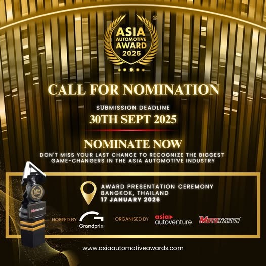 งานประกาศรางวัล Asia Automotive Award 2025 (ครั้งที่5) มีกำหนดการจัด งานในวันที่ 17 มกราคม 2569  สำหรับบริษัทที่สนใจเข้าร่วมเสนอชื่อเพื่อเข้ารับรางวัลในสาขาต่างๆ อาทิ ด้านนวัตกรรม (Innovation),   ด้านความยั่งยืน (Sustainability), ด้านมอเตอร์สปอร์ต (Motorsport), ด้านผลิตภัณฑ์หลังการขาย (Aftermarket), ด้านความเป็นผู้นำ (Leadership) และ อื่นๆ รวมกว่า 11 สาขา  สามารถส่งใบเสนอชื่อเข้าชิงรางวัลได้ที่ https://asiaautomotiveawards.com
