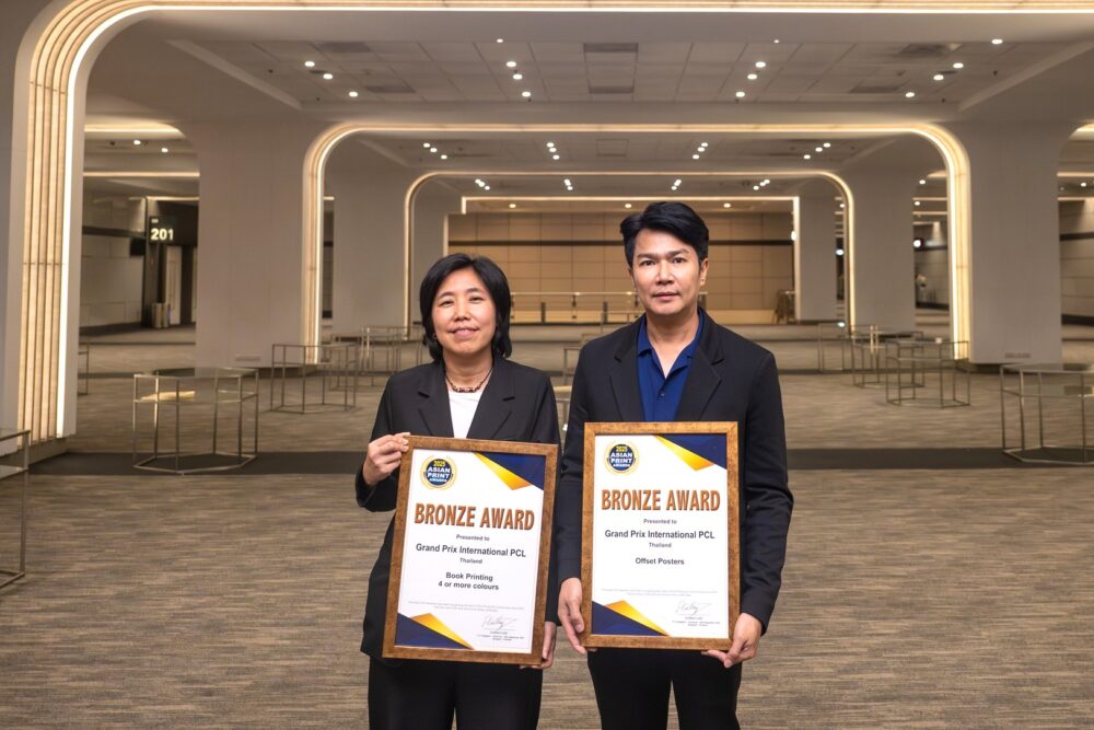 บริษัท กรังด์ปรีซ์ อินเตอร์เนชั่นแนล จำกัด (มหาชน) สร้างความภาคภูมิใจให้กับอุตสาหกรรมสื่อสิ่งพิมพ์ไทย หลังคว้า 2 รางวัลอันทรงเกียรติประเภท Bronze Award ในการประกวดสิ่งพิมพ์ Asian Print Awards 2025 บนเวทีระดับนานาชาติของภูมิภาคเอเชีย ได้แก่ รางวัลงานพิมพ์นิตยสาร ระบบการพิมพ์แบบออฟเซ็ต มากกว่า 4 สี โดยคุณอโณทัย เอี่ยมลําเนา ประธานเจ้าหน้าที่ สายการผลิต บริษัท กรังด์ปรีซ์ อินเตอร์เนชั่นแนล จำกัด (มหาชน) ขึ้นรับมอบรางวัล และรางวัลงานพิมพ์โปสเตอร์ ระบบการพิมพ์แบบออฟเซ็ต โดยมีคุณกฤษฏิ์พิรัช รัตนวิจิตร ผู้จัดการขายธุรกิจสิ่งพิมพ์ รับมอบรางวัล ณ ศูนย์นิทรรศการและการประชุมไบเทค บางนา วันศุกร์ที่ 19 กันยายน 2568 ที่ผ่านมา