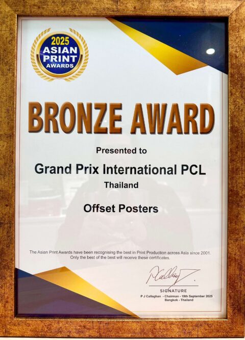 งานประกวดรางวัล Asian Print Awards 2025 ถือเป็นรางวัลอันทรงคุณค่าในวงการการพิมพ์และบรรจุภัณฑ์ระดับเอเชีย ที่มอบให้แก่ผลงานที่มีความโดดเด่นด้านคุณภาพ ความคิดสร้างสรรค์ และมาตรฐานการผลิต โดยมีคณะกรรมการผู้ทรงคุณวุฒิจากนานาประเทศร่วมตัดสินอย่างเข้มข้น จากผลงานเข้าร่วมกว่า 300 บริษัท จาก 20 ประเทศ ทั่วภูมิภาคเอเชีย การที่กรังด์ปรีซ์ฯ ได้รับรางวัลครั้งนี้ นับเป็นการสะท้อนถึง ความมุ่งมั่นพัฒนาคุณภาพงานสิ่งพิมพ์สู่มาตรฐานสากล และเป็นเครื่องพิสูจน์ว่าผลงานของคนไทยสามารถก้าวขึ้นสู่การยอมรับในเวทีระดับนานาชาติได้อย่างภาคภูมิ ไม่เพียงแต่เป็นเกียรติประวัติแก่บริษัทฯ หากยังเป็นก้าวสำคัญที่ตอกย้ำ ความเป็นผู้นำด้านนวัตกรรมสื่อสิ่งพิมพ์ ควบคู่กับความเป็นผู้นำการจัดงานกิจกรรมต่างๆในระดับสากล ของบริษัท กรังด์ปรีซ์ อินเตอร์เนชั่นแนล จำกัด (มหาชน) อีกด้วย