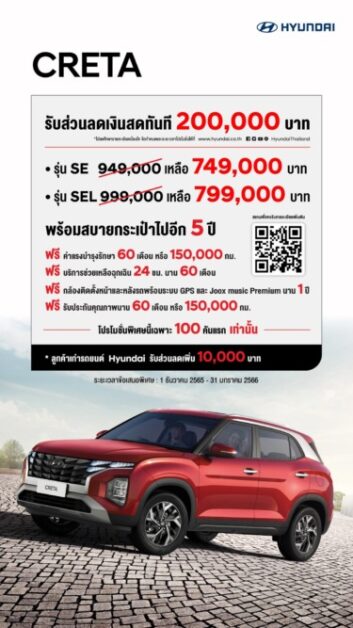 ฮุนได เครต้า มอบส่วนลดเงินสดมูลค่า 200,000 บาท เพียง 10…