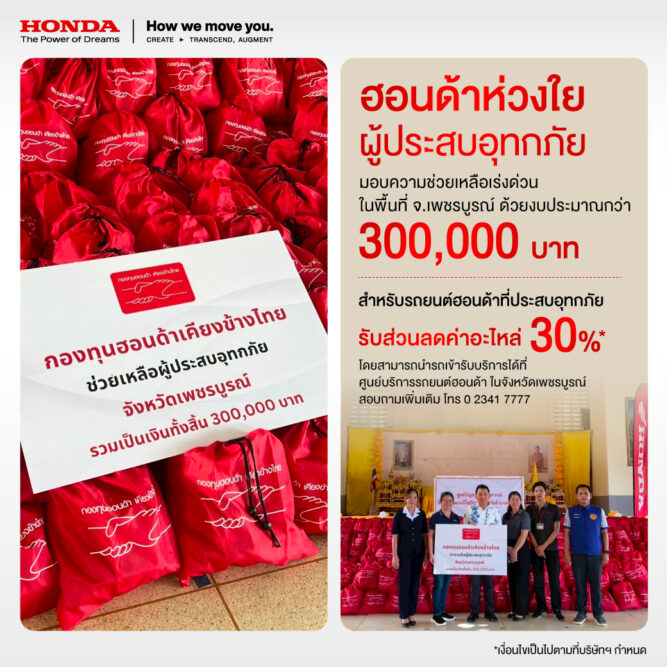 กองทุนฮอนด้าเคียงข้างไทย มอบความช่วยเหลือเร่งด่วนแก่ผู้ประสบภัยน้ำท่วมใน จ.เพชรบูรณ์