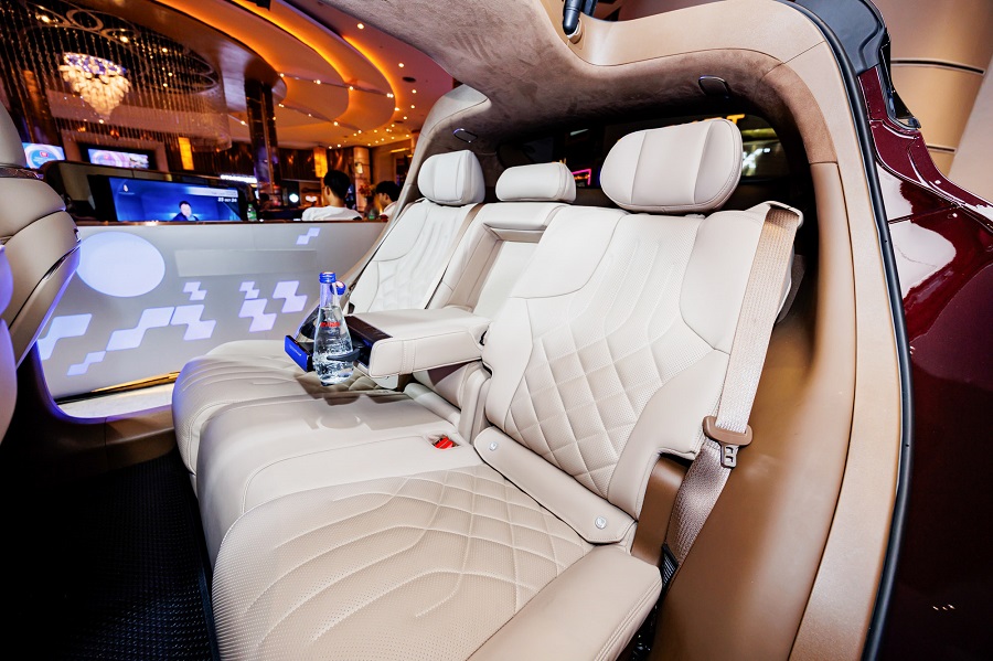 ด้านหลังของ HYPTEC HT มี เบาะนั่งหลังที่สามารถปรับเอนได้ถึง 143 องศา ซึ่งเป็นการออกแบบที่เน้นความสะดวกสบายในการโดยสาร โดยสามารถปรับเบาะให้อยู่ในตำแหน่งที่ต้องการเพื่อการพักผ่อนระหว่างการเดินทางได้อย่างอิสระ พร้อมด้วยฟีเจอร์ที่วางขาสำหรับผู้โดยสารตอนหลัง ยกระดับความสบายในการนั่งโดยสารไปอีกขั้น นอกจากนี้ยังมาพร้อมกับ โต๊ะอเนกประสงค์ด้านหลัง ซึ่งสามารถใช้เป็นที่วางสิ่งของหรืออุปกรณ์ต่างๆ ได้อย่างสะดวก ไม่ว่าจะใช้ทำงานหรือทานอาหาร
