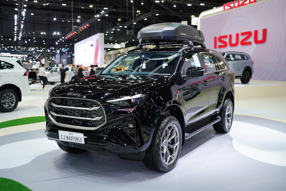 MU-X “THE NEXT PEAK” รุ่น Ultimate 2.2 Ddi MAXFORCE สีดำบาวาเรียนไมก้า (Bavarian Black Mica) มาพร้อมคอนเซ็ปต์รถครอบครัวเพื่อการท่องเที่ยว พร้อมความปลอดภัยครบครันด้วย ใหม่! กล้องรอบคัน 360° Surround View Camera พร้อมมุมมองใต้ท้องรถเพื่อความแม่นยำในการขับขี่ เพิ่มความอเนกประสงค์ในการเดินทางด้วยชุดคานบนหลังคา THULE รุ่น WINGBAR EDGE เพิ่มพื้นที่ในการจัดเก็บสัมภาระ ด้วยกล่อง THULE FORCE บนหลังคา เสริมความมั่นใจในการเดินทางด้วยล้อ LENSO รุ่น JAGER DYNA พร้อมยาง BRIDGESTONE DUELER AT002 ขนาด 265/50R20