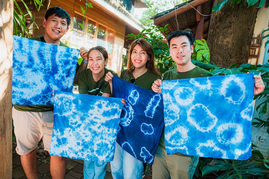 โดยเลือกสีอ่อน เข้มได้ ตามระยะเวลาในการจุ่มผ้า แม้เป็นกิจกรรมช่วงสั้นๆ แต่สร้างความสนุกสนานและตื่นเต้นกับการเห็นลวดลายบนผ้าในสไตล์ตัวเองที่มีผืนเดียวในโลก