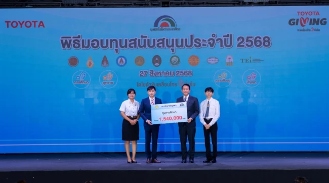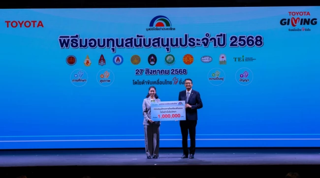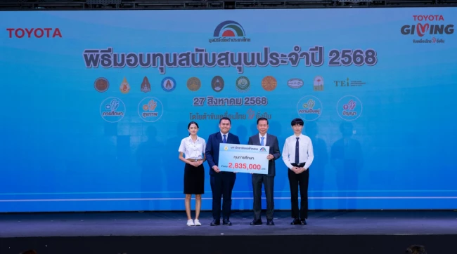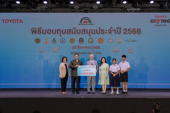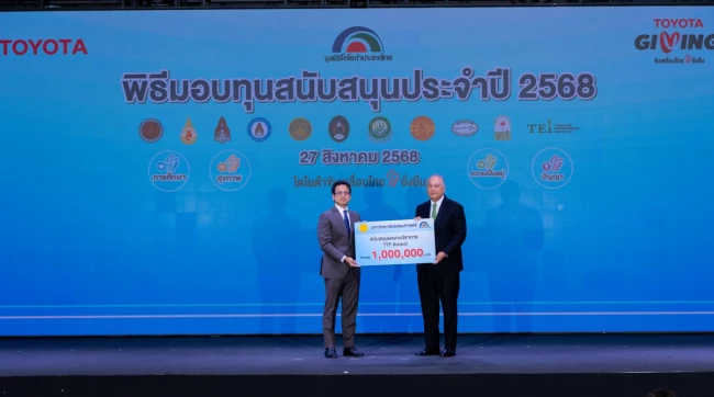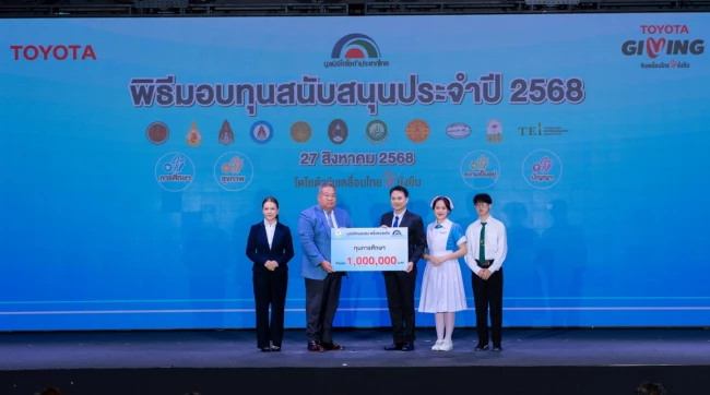 นายประมนต์ สุธีวงศ์ ประธานมูลนิธิโตโยต้าประเทศไทย พร้อมด้วย นายกลินท์ สารสิน ประธานคณะกรรมการ และนายโนริอากิ ยามาชิตะ กรรมการผู้จัดการใหญ่ บริษัท โตโยต้า มอเตอร์ประเทศไทย จำกัด ร่วมเป็นเกียรติในพิธีมอบทุนสนับสนุนประจำปี 2568 แก่สถาบันการศึกษาและองค์กรสาธารณกุศล รวมมูลค่า 18.69 ล้านบาท เมื่อวันพุธที่ 27 สิงหาคม พ.ศ.2568 ณ Toyota ALIVE บางนา