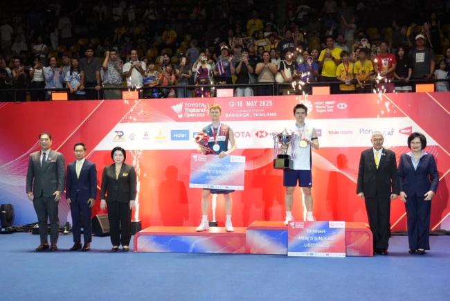สิ้นสุดการแข่งขันแบดมินตันระดับนานาชาติ รายการ “TOYOTA Thailand Open 2025” การแข่งขันในระดับ “HSBC BWF World Tour Super 500” ชิงถ้วยพระราชทานพระบาทสมเด็จพระเจ้าอยู่หัว และเงินรางวัลรวม 475,000 ดอลลาร์สหรัฐ หรือประมาณ 16,150,000 บาท เมื่อวันที่ 18 พฤษภาคม 2568 ที่อาคารนิมิบุตร สนามกีฬาแห่งชาติ ท่ามกลางเสียงเชียร์กึกก้องตลอดการแข่งขัน โดยผลการแข่งขันประเภทชายเดี่ยว “วิว” กุลวุฒิ วิทิตศานต์ คว้าแชมป์ชายเดี่ยว สมัยที่ 2 ชนะแอนเดอร์ส แอนทอนเซ่น 2-1 เกม ด้วยสกอร์ 21-16 / 17-21 และ 21-9 หลังจากจบการแข่งขัน นายศุภกร รัตนวราหะ รองกรรมการผู้จัดการใหญ่ บริษัท โตโยต้า มอเตอร์ ประเทศไทย จำกัด พร้อมด้วย คุณหญิงปัทมา ลีสวัสดิ์ตระกูล ประธานสหพันธ์แบดมินตันโลก และกรรมการคณะกรรมการโอลิมปิกสากล และเจ้าหน้าที่ผู้มีส่วนร่วมในการจัดการแข่งขัน ร่วมกันมอบรางวัล