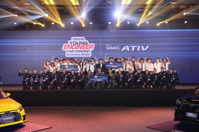 บริษัท โตโยต้า มอเตอร์ ประเทศไทย จำกัด โดยฝ่ายการตลาดรถยนต์นั่ง จัดการแข่งขันรอบชิงชนะเลิศกิจกรรม “TOYOTA YOUNG ENGINEER CAR CONTEST สตาร์ตแพชชัน ปั้นไอเดีย” เพื่อเฟ้นหาสุดยอดทีมนักศึกษาวิศวกรรมศาสตร์จากสถาบันการศึกษาชั้นนำทั่วประเทศ ในการออกแบบชุดแต่งรถยนต์ภายใต้หลักวิศวกรรมและอากาศพลศาสตร์ กับรุ่น YARIS ATIV และ YARIS CROSS เมื่อวันที่ 13 ธันวาคม 2568 ณ TOYOTA ALIVE ถนนบางนา-ตราด กม.3